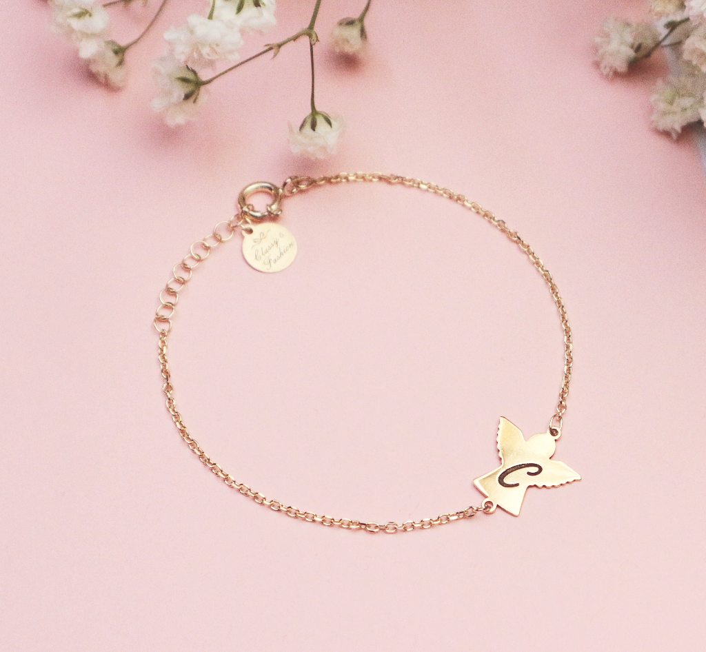 Pulseira anjinho com possibilidade de gravar iniciais ou um nome.