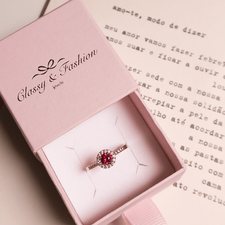 - anel cravado à mão com zircónias brancas e uma zircónia de cor