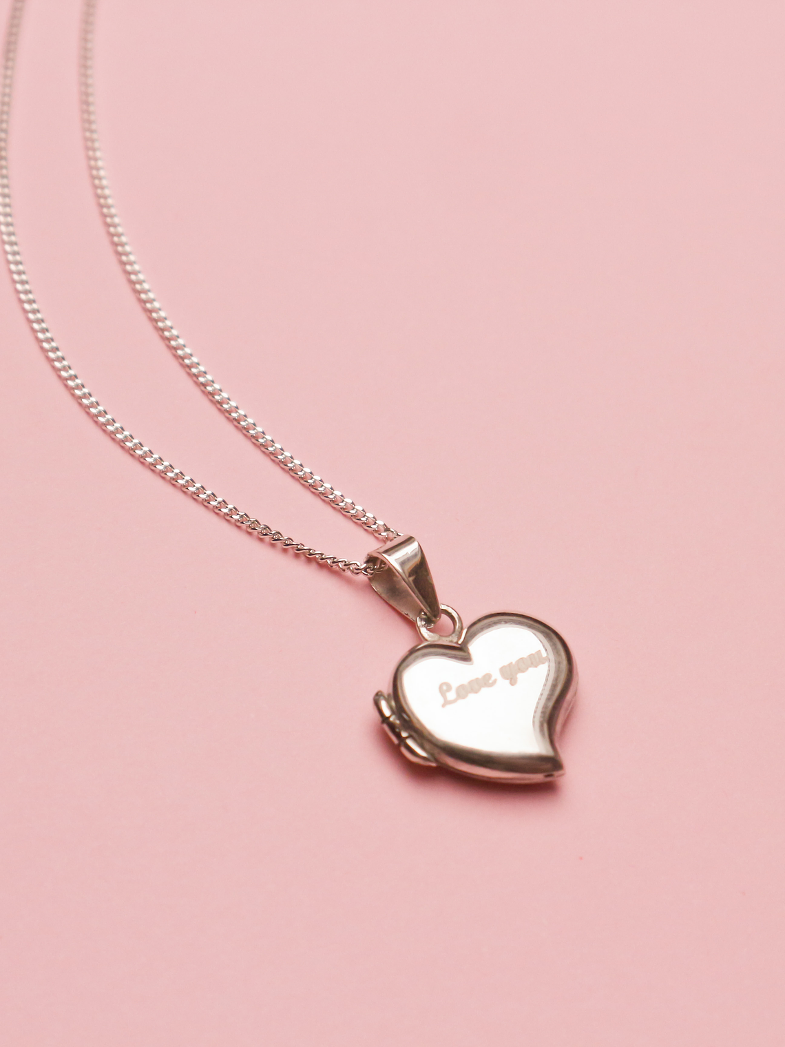 Colar com relicário em prata com acabamento polido. Pode conter gravação no exterior e/ou no interior. Relicário para duas fotografias.