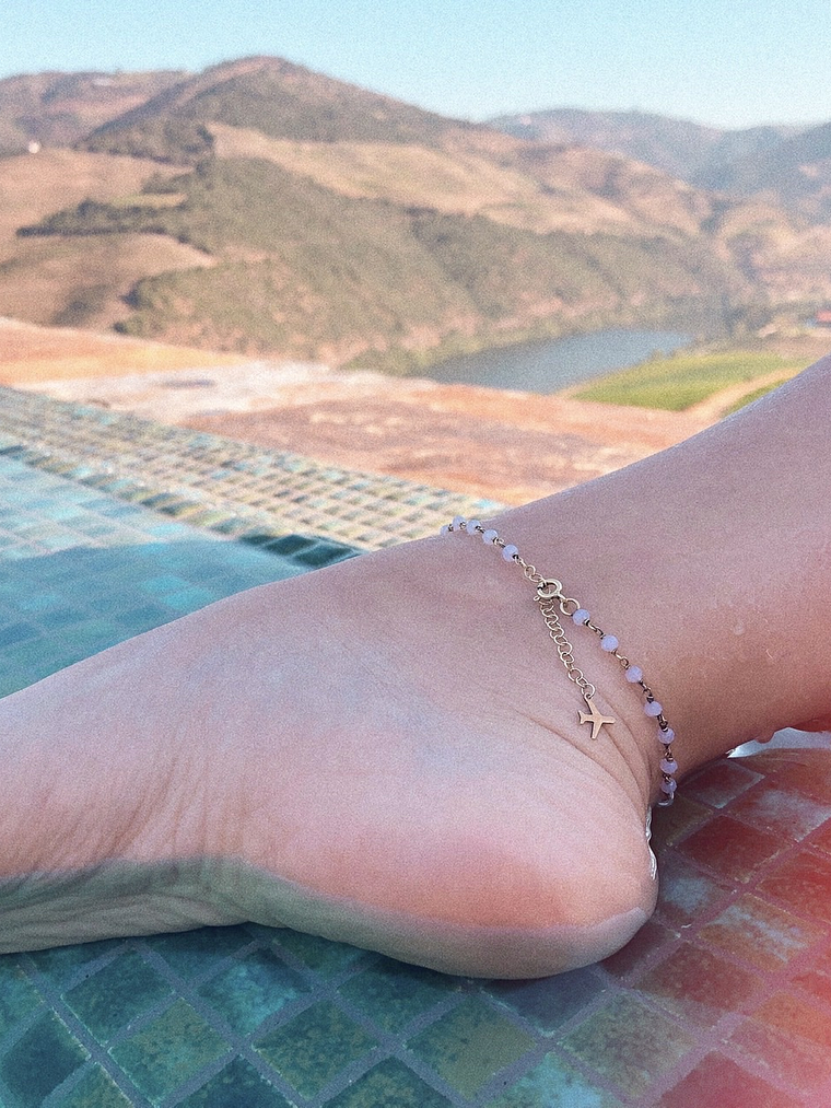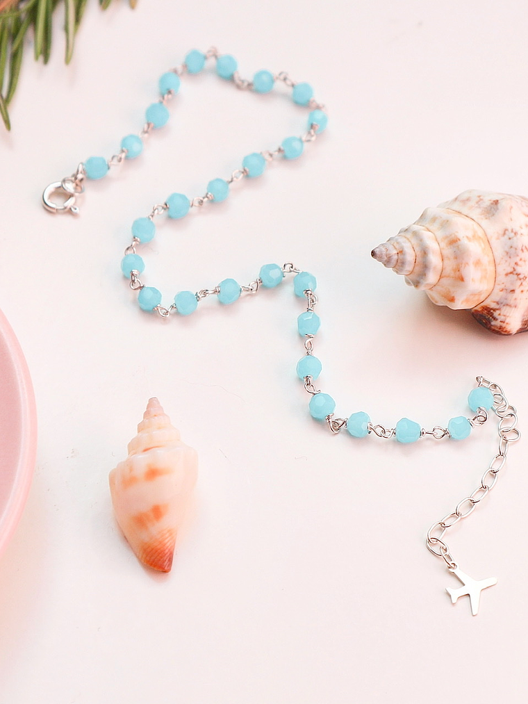 pulseira para o tornozelo enfiada a terço com pedras sintéticas em prata 925